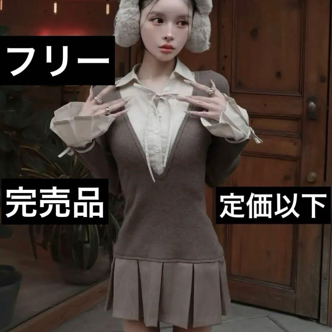 新品ワンピースです。ブロ-チが付いていますが取り外し可能なのでセ-タ-着用につけてもアクセントになるかと思います。ポケット2箇所ファスナ-に真珠がついていて綺麗です。採寸身幅 46cm着丈 98cmサイズ 42